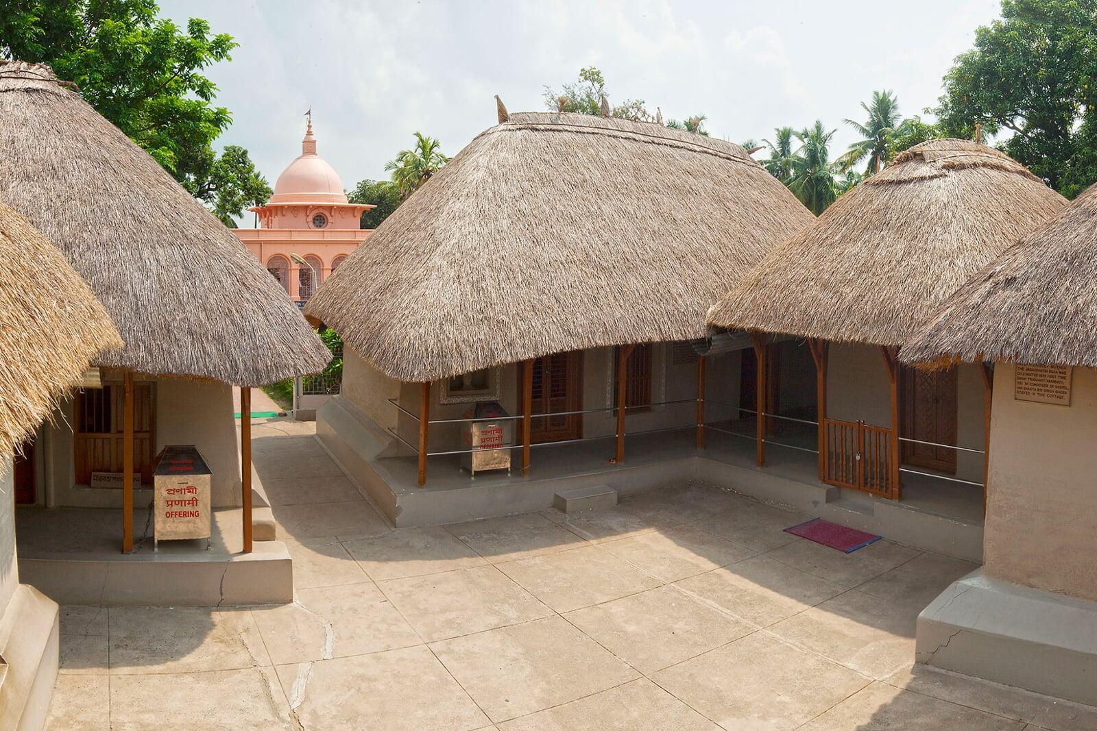 With the increase in the number of devotees, various kinds of difficulties cropped up regarding accommodation in the original house. That was why Swami Saradananda bought a piece of land on the western side of the tank called 'Punya Pukur', and got a separate house build thereon for Holy Mother in 1915-16. It was registered in the name of Goddess Jagaddhatri. This new house consists of four mud walled and straw roofed rooms in its four corners. She utilized one of these rooms as her bed-chamber and also for her worship of Sri Ramakrishna. She gave initiation, Brahmacharya and Sannyasa to aspirants in this room also. At present, this room has been converted into temple with a life-sized portrait of the Holy Mother installed therein. The room adjoining it was used as a kitchen whereas the room opposite to the kitchen was occupied by Nalini Didi, niece of the Holy Mother. The remaining room, which faces the west and is now encircled by railings, was reserved for the Holy Mother's worship of the Goddess Jagaddhatri, and, at other times, for the accommodation of devotees. The monastic disciples of Sri Ramakrishna such as Swami Saradananda and Swami Subodhananda and also other devotees lived in that room on the occasion of their visit to Joyrambati.